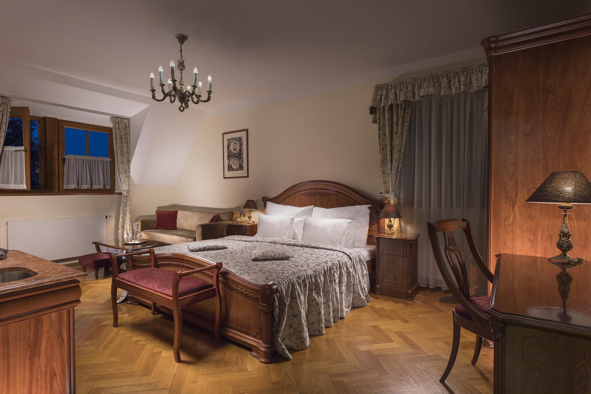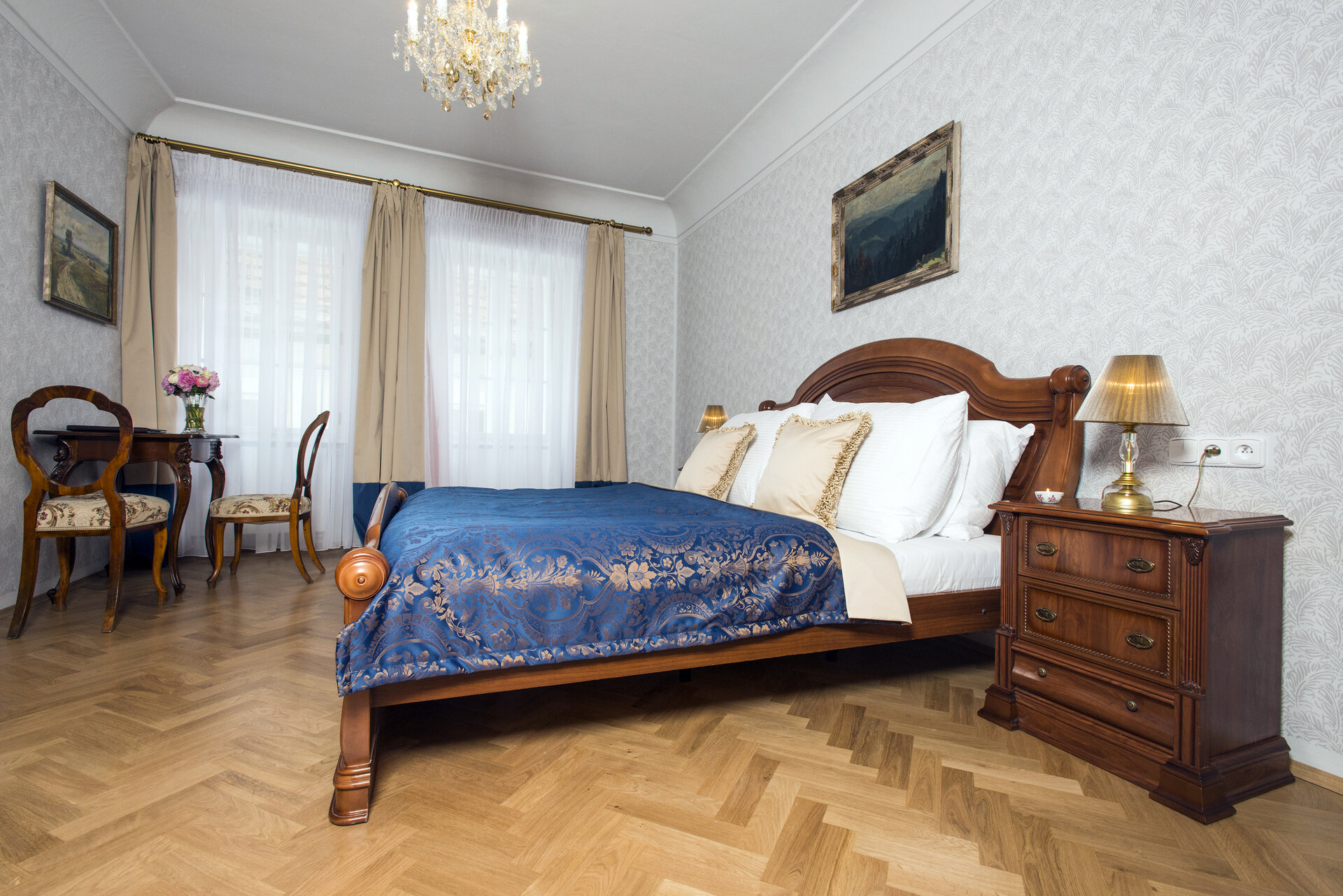 Item82, Link to Larger Image, Bedroom with chandelier and chairs