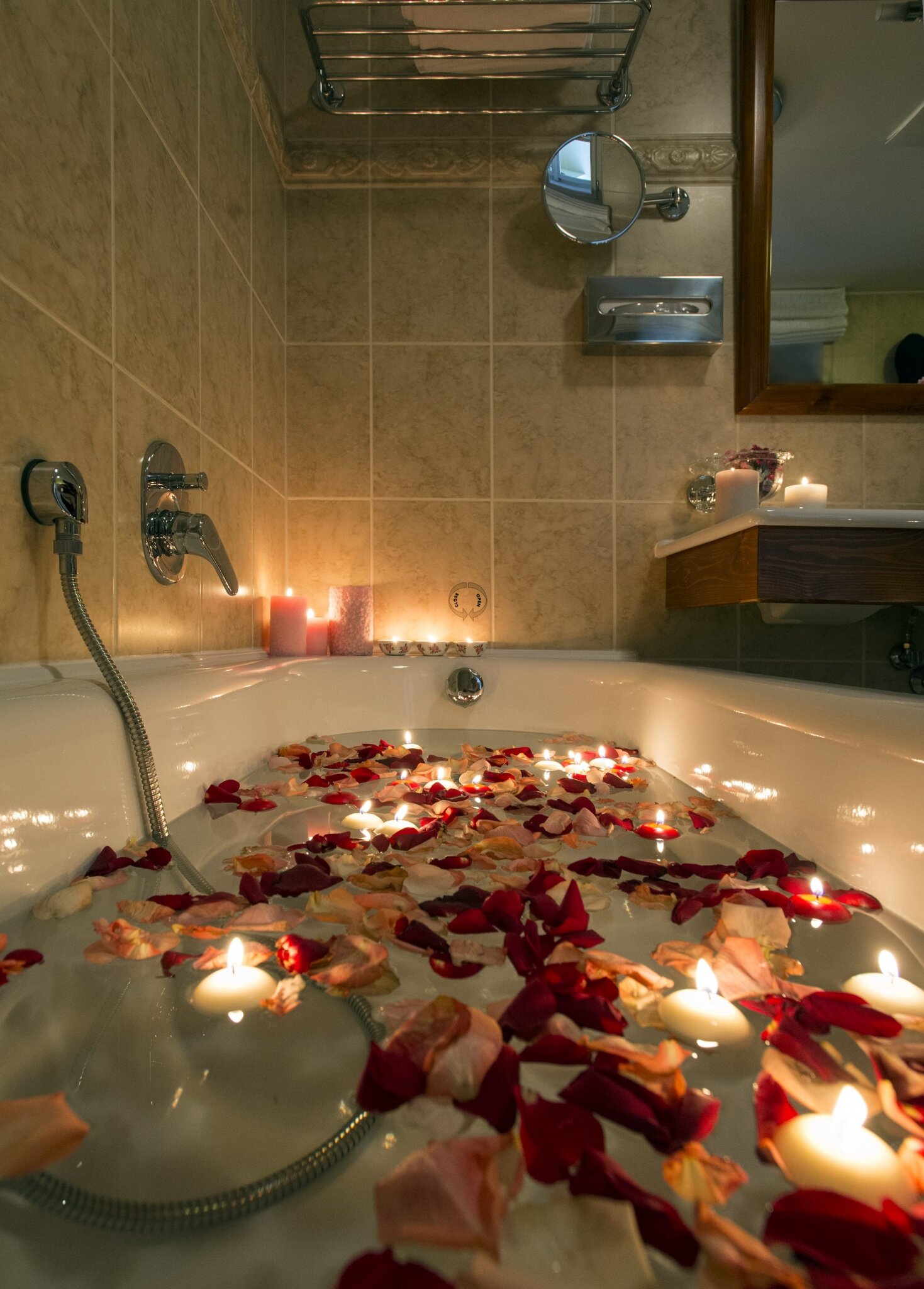 Item34, Link to Larger Image, Bathtub filled with rose petals and candles