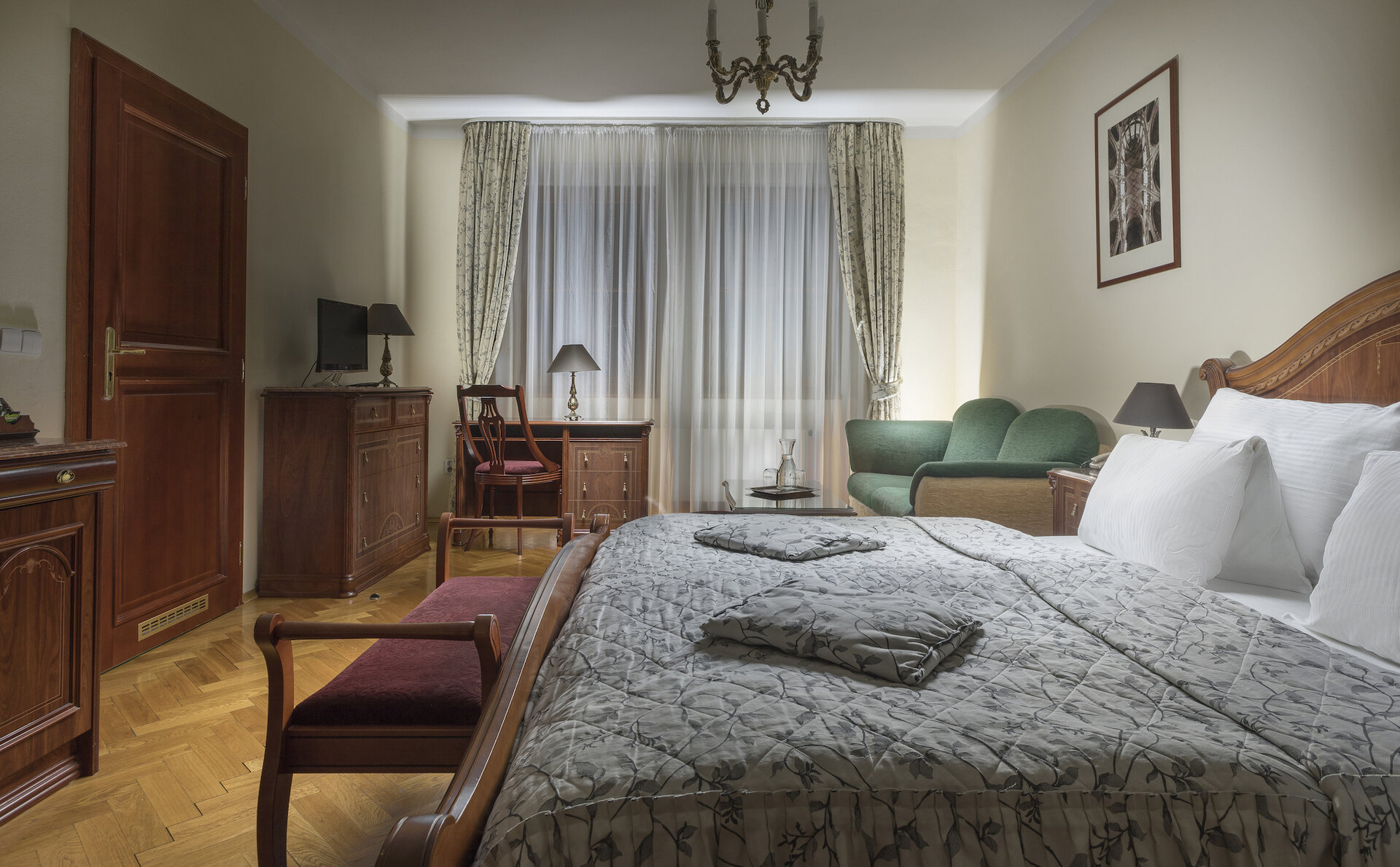 Spacious standard rooms are equipped with a beautiful Baroque style furniture with modern elements. Rooms offer LCD TV with selected national and international channels, free Wi-Fi, working desk with chair, coffee/tea facilities, minibar, safe and telephone.